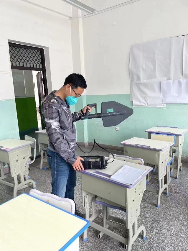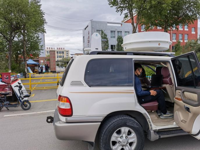 省監測站工作人員在考點進行考前電磁環境測試